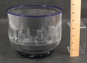 Authentic Pairpoint Hand Blown Glass Presentation Bowl Etched Boston Skyline, NR