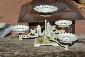 Vintage JAPAN White CAST IRON Swivel 5 Candle Holder Multi Position Tall Center