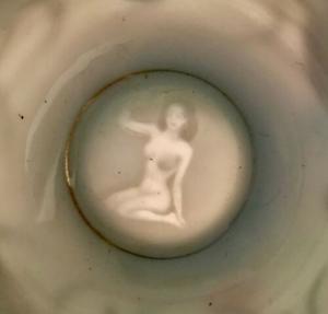 BLACK LITHOPANE DRAGON WARE CUP & SAUCER SET, MADE IN JAPAN, NUDE GEISHA WOMAN