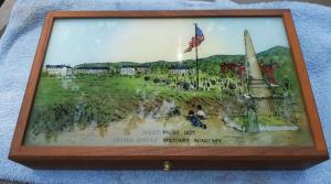 VINTAGE WEST POINT MILITARY ACADEMY 1828 REVERSE PAINTING WOOD BOX OLD TRINKET
