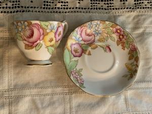 Royal Albert “Bouquet” Tea Cup & Saucer MINT 1910-40 English Handpainted Signed
