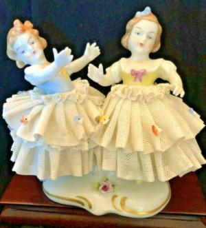 $ Reduced-Dresden,Lace Collectible,Volkstad German,girls,flower,capaodimonte,