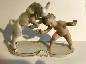 Hard to find Germany SCHAUBACH KUNST Porcelain Naked Boy and Goat #1764