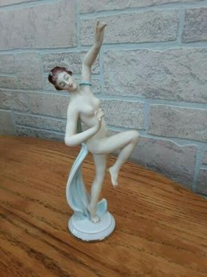 Vintage Porcelain Nude Dancer W/Scarf Figurine Alka West Germany 8" Tall