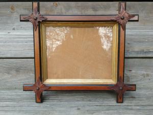 Antique Carved Folk Tramp Art Adirondack Walnut Wood & Gilt Gold Frame 8 x 10
