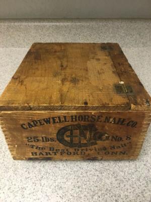 Antique Advertising Wooden Box Capewell Horse Nail Co Hartford Conn With Lid