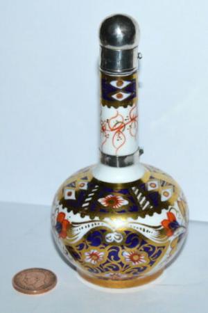 19th Century Scent Bottle Levi Salaman Sterling Mounts Derby Imari Colors