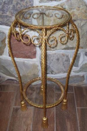 vintage italian tole gold metal glass tassel rope plant end stand table shelf