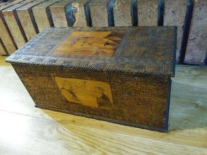Antique FOLK ART Handcarved Wooden Cedar Box Teddy Roosevelt Theme ESTATE FIND