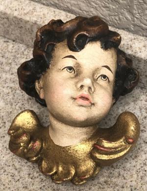 Vintage 4" ANRI Italy Carved Wood Hand Painted Gold Leaf Angel Winged Cherub