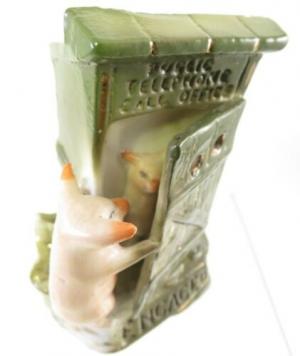 ANTIQUE PINK PIGS GERMAN FAIRING PORCELAIN FIGURINE ENGAGED IN PHONE BOOTH