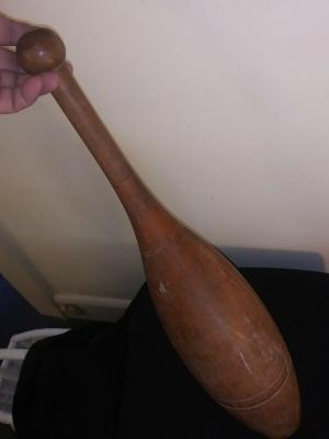 Giant Antique Wooden Indian Club Exercise Pin 8 Lb 27in.Tall