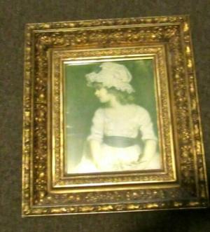 Antique golden ornate gesso and wood deep frame with pretty young girl