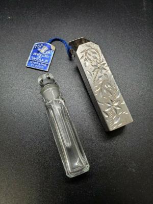 1950''s Sterling Silver Refillable Glass Perfume Bottle In Sterling Case