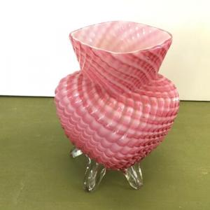 Beautiful Antique Vintage Victorian Reversed Swirl Cased Ribbed Cranberry Vase