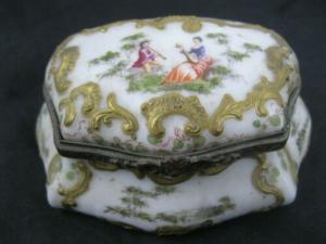 ANTIQUE DECORATIVE FRENCH PORCELAIN HAND PAINTED TRINKET BOX MEISSEN ?