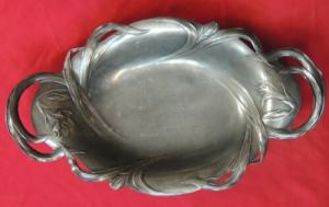 France ca. 1900: Lovely Art Nouveau Serving Plate, Floral Motifs, Pewter