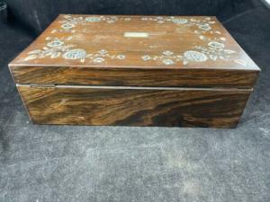 ANTIQUE ROSEWOOD BOX WITH MIRROR INLAID MOTHER OF PEARL GOOD CONDITION