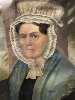 Antique Early American Frame Folk Art Portrait Painting Of Woman Ca 183540