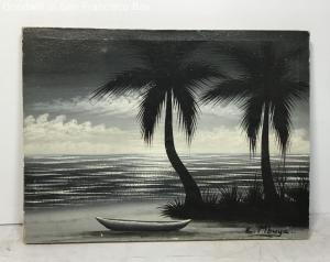 Vintage Painting Oil On Canvas Signed E. Mbuya Tropical Seascape Folk Art Styl