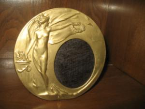 | Art Nouveau Deco Antique Brass Goddess Wreath Picture Frame Beautiful |