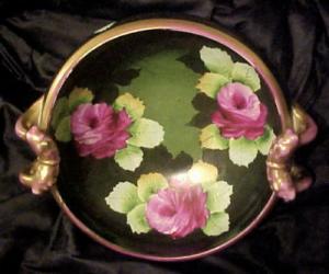 | Antique 19C Austria SIGNED Hand Painted Victorian Rose BOWL |