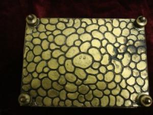 | Signed JB Antique Repousse Footed Brass Box Mahogany Lined Unusual Pattern Under |