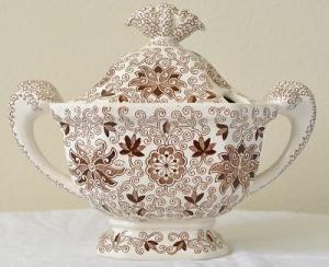 | ANTIQUE ENGLISH BROWN & WHITE IRONSTONE MASON'S TUREEN |