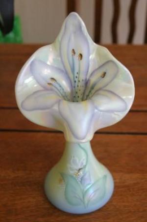 | Fenton Glass Vase with Hand-Painted Iris Flower, Excellent Condition! |