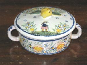 | ANTIQUE FRENCH FAIENCE/CERAMIC COVERED JAR/DISH. MALICORNE N. QUIMPER.WONDERFUL! |