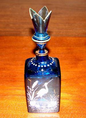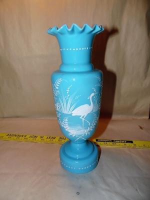 | ANTIQUE OPALINE VICTORIAN BLUE BRISTOL ART GLASS VASE, Heron, beautiful |