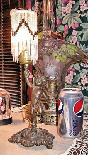 | Vintage Antique Cherub Table Lamp Czech bead Shade |