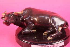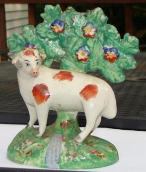 | Antique Staffordshire Ram or Lamb Pearlware Figurine,Bocage & Hollow Base |