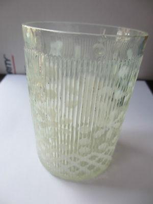 | Antique Victorian art glass tumbler white opal snowflake pattern ribbed blown |