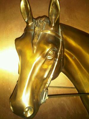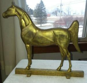 | VINTAGE 1938 HEAVY SOLID BRASS KING''S GENIUS HORSE DOORSTOP sgn C.R.K. RIFE LOTH |