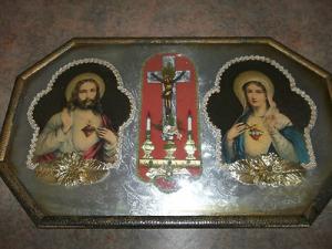 | ANTIQUE RELIGIOUS CONVEX / BUBBLE PICTURE FRAME HAMMERED METAL OCTAGONAL SHAPED |