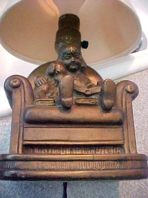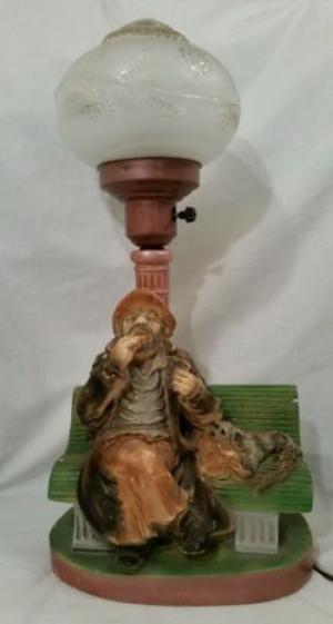 | Antique Unusual Figural Bum Hobo on Park Bench w/ His Dog Chalkware Lamp |