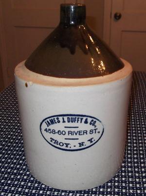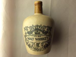 | Antique Stoneware Jug O''Keefe''s Pure Malt Whiskey Oswego, NY Decorated Crock |