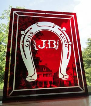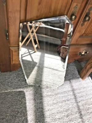 | Antique vintage,BEVELED Glass Wood Back OBLONG wall mirror,22" LONG BY 13" HIGH |