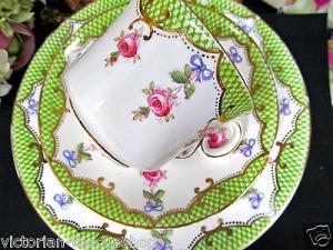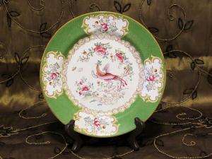 | Antique Minton Cockatrice(Green) Pattern Salad Plates (2) - Raised Pattern - Glo |