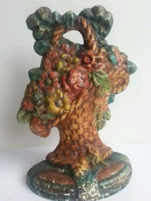 | Antique Cast Iron Sitting Cat Doorstop Full Figure w Original Paint Door Stop |