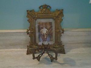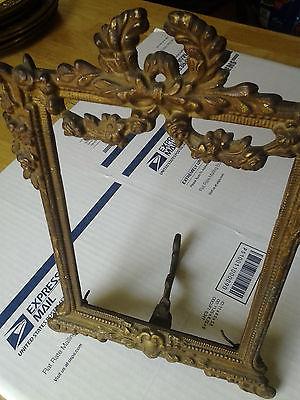 | Antique 5x7 Ormolu Rococo Brass Bronze Easel Photo Frame Olive Laurel Branch |