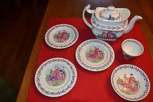 | Antique Burleigh Ware Willow Burslem China Teapot Trivet Rest Stand 1880 |