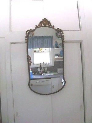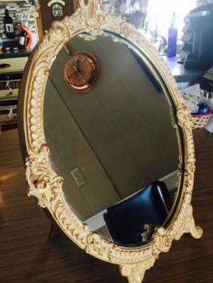 | Vintage Gold Gilt Wood Framed Ornate LARGE Table Top Vanity Dresser Mirror |