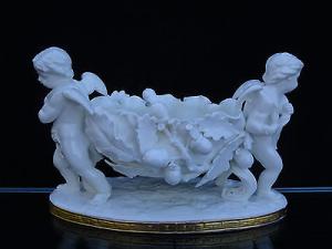 | 19TH C. MOORE BROTHERS CENTERPIECE BOWL W/ WINGED CHERUBS, ACORNS & LEAVES |