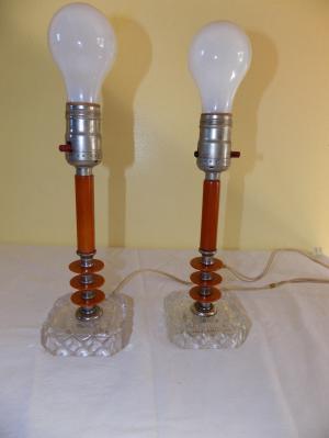 | Vintage Set of Bakelite Bedroom Lamps with Glass Bases (5151) |
