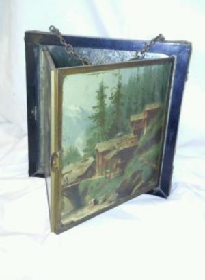 | ANTIQUE VICTORIAN TRAVELING TRIPLE FOLDING  MIRROR NICKEL PLATE 1876 L B BREVETE |