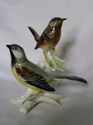 | Grey wagtail Eurasian wren Group Passerine Bird Porcelain Figurine Ens German |