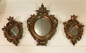| 3 Antique GOLD Gilt Gesso Rococo Florentine Toleware WOOD MIRRORS Frames ITALY |