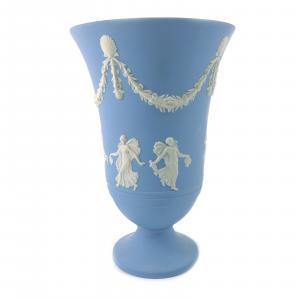 | Vintage Jasper Ware Wedgwood Blue & White Vase 7.5" |